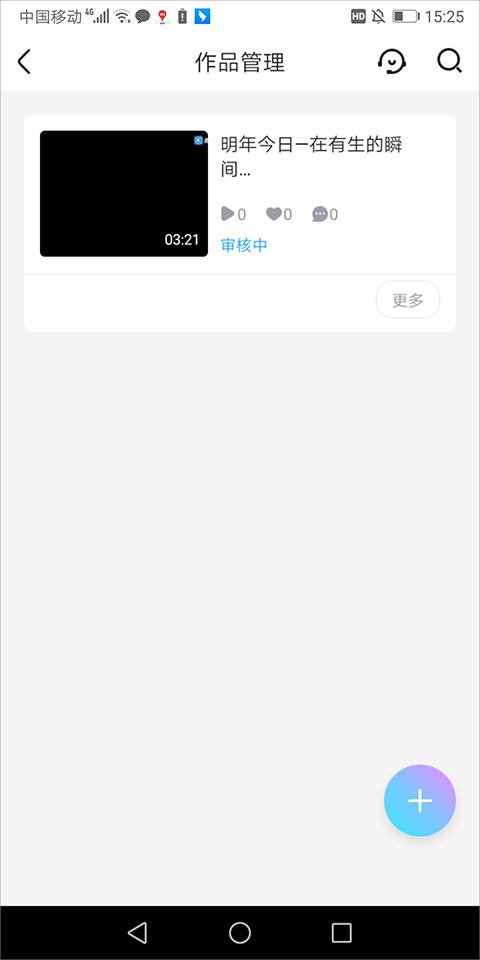 6、发布完成后,用户返回到【更多】页面中点击【作品管理】,在打开的新页面中就可以点击该视频进行播放了,即使视频还在审核中但是可以播放了
