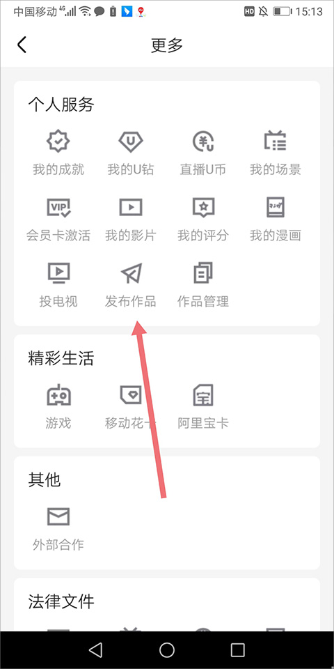 2、在打开的【更多】页面中点击【发布作品】