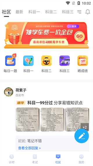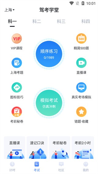 2、主页有相关的一些题库,点击练习和模拟考试即可开始你的驾照旅程;