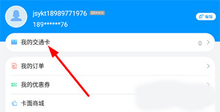 1、在“我的”界面,我们点击列表中的“我的交通卡”。