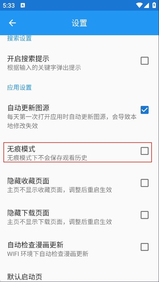 下拉点击开启无痕模式即可