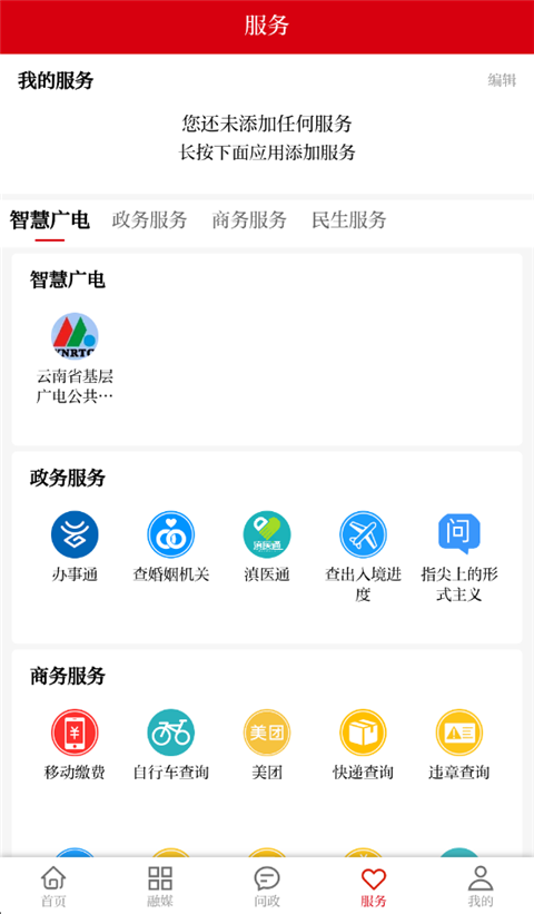 1、首先我们打开软件,在首页点击服务版块;
