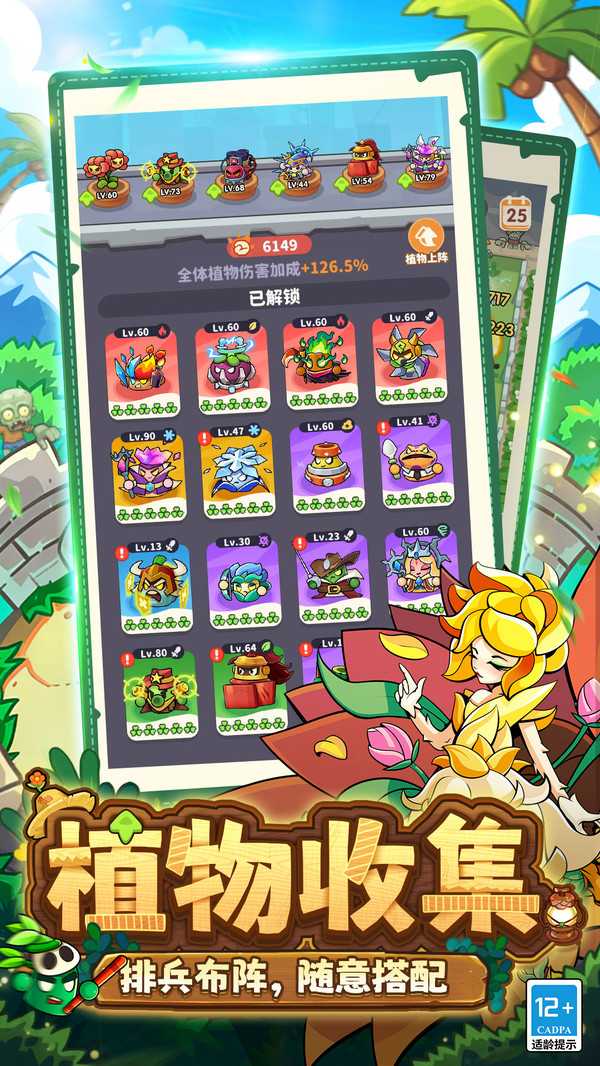 1、培养各种的强力植物来帮助玩家完成冒险挑战。