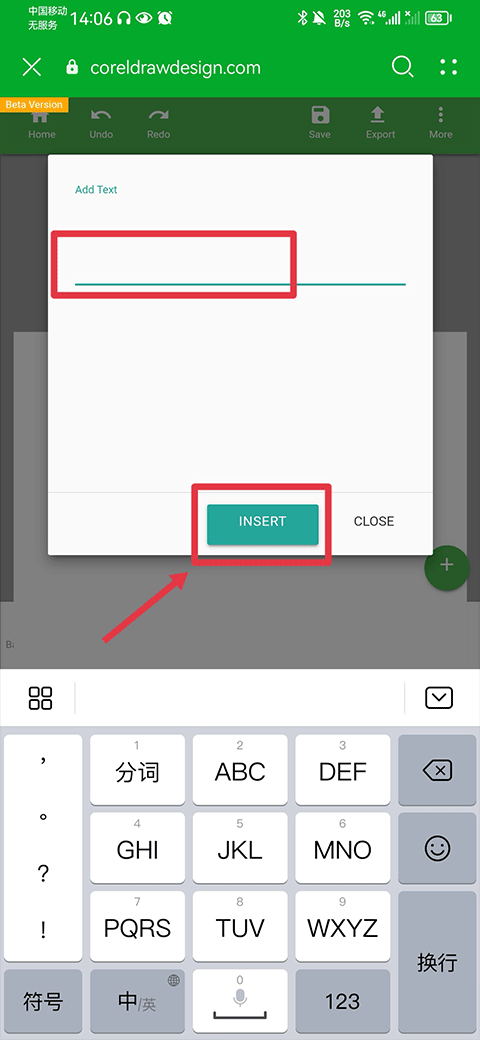 4、然后将文字编辑在此处后,点击insert