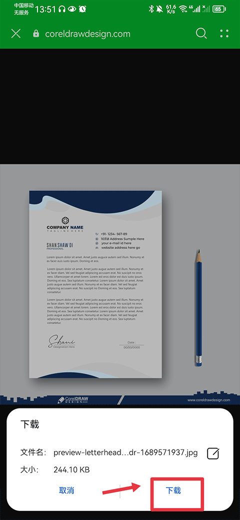 2、选择图片后,将该图片界面下滑至底部并点击jpg image下载按钮