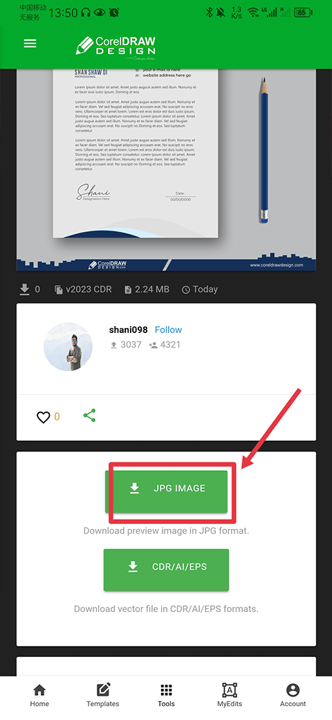 1、打开CDR设计软件手机版后,在home界面中搜索或选择你要下载图片