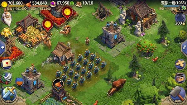诸葛弩兵、近卫骑士、花郎射手,扶桑武士特等色兵种等你检阅指挥。各色战术配合,战争策略布局,快速摧毁,争夺资源获得胜利!更有全面战争玩法开启超大型团战PVP新时代!