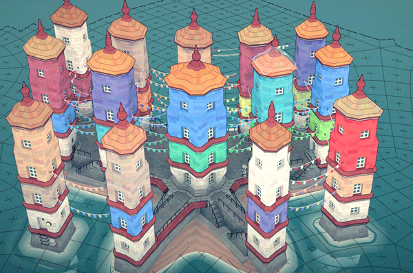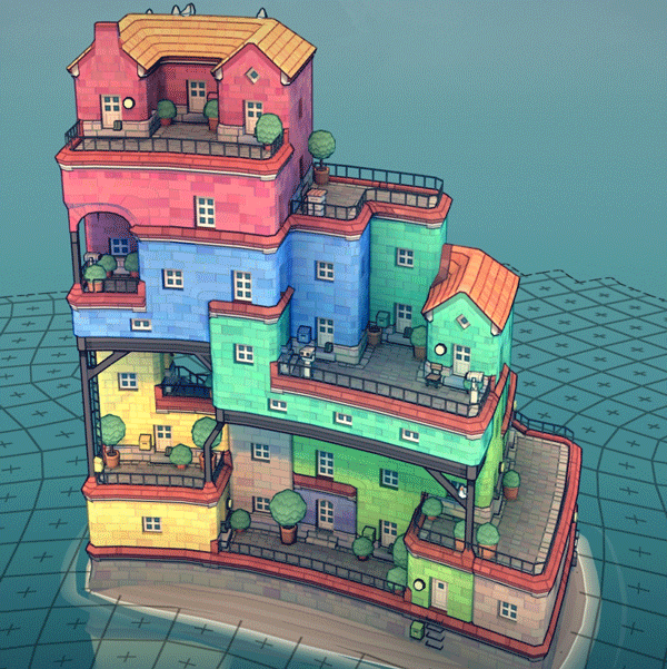 5、根据不同的配置自动地将这些色块来组合在一起打造更多建筑。