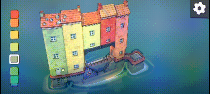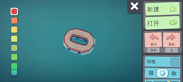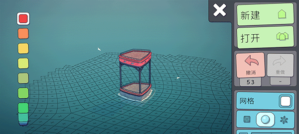 玩家们可以通过左侧的调色盘来选择自己喜欢的颜色,点击完喜欢的颜色之后,直接在屏幕上建造就会出现对应的颜色。(但是这里需要注意一点,就是地基的颜色是永远不会改变的都是红灰搭配。)