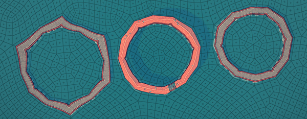 花园/田野内将一个高架部件连接到更高的建筑物上,可使一栋2个空间高度及以上的相同颜色的建筑物触发石墙。