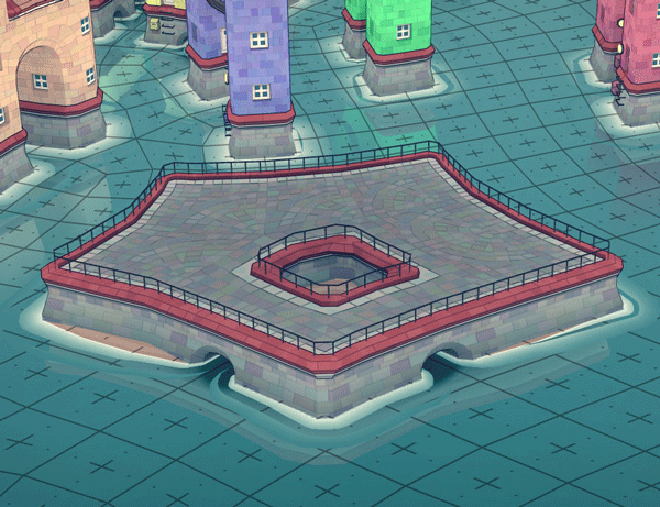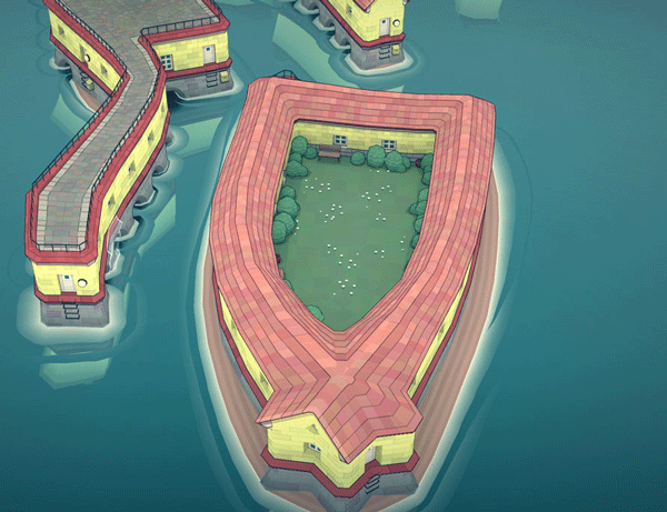 其次,相邻两个地基相连,会形成一个桥洞。如果斜着放置,怀疑形成一个较小的桥洞。