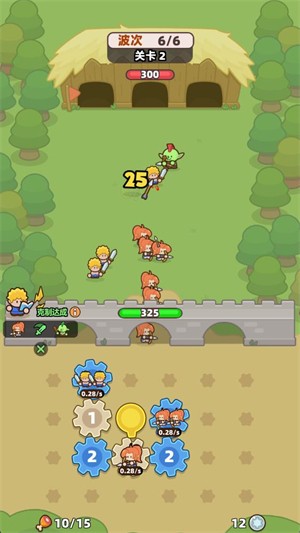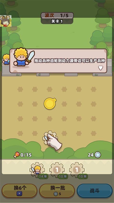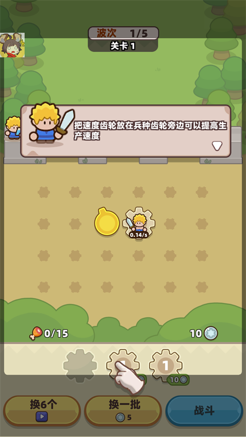 3、点击战斗后齿轮会转动来召唤小兵,小兵会自动消灭出现的怪物敌人。