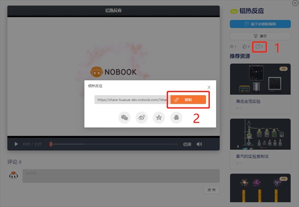 点击“复制”,即可将实验资源以链接的形式进行外部分享
