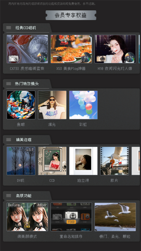 《DazzChic》是一款专为喜欢复古文艺风格的用户打造的复古专业相机软件。在这款软件中,不仅提供了复古胶片质感的相机供用户们使用,一键轻松拍出相机质感。还有拍立得相框等等模板,让照片拍摄变得更加高级。同时,还有CCD卡片机等等特殊效果,给照片加上一层年代的质感滤镜,轻松出片。另外,还有丰富的胶片滤镜,让你体验到那个年代的不同复古风情。
