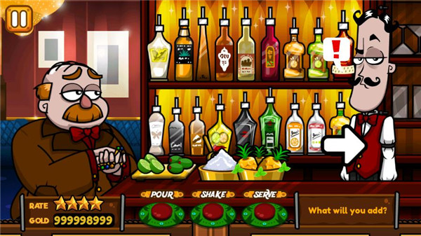 5、从基本饮料开始,例如莫吉托(Mojito),Pina Colada和Negroni。根据食谱学习它们,并培训他们的准备工作,直到不再需要食谱预览为止。尽快提供最优质的饮料!您的鸡尾酒和饮料将根据配方和食用方式,在不同的水平上进行评估,并考虑准备时间。制作您自己的原创饮品,为您的客人服务,并观察他们的反应。当您找到客户最喜欢的饮料时,将其添加到饮料菜单中,并根据自己的喜好命名。