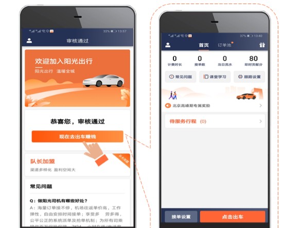 6、完成注册之后,点击出车赚钱就可以在线进行接单了