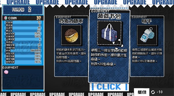 2、通过打怪获取到的资源刷新商店,选择合适的道具来不断强化角色应对下一个波次的敌怪。