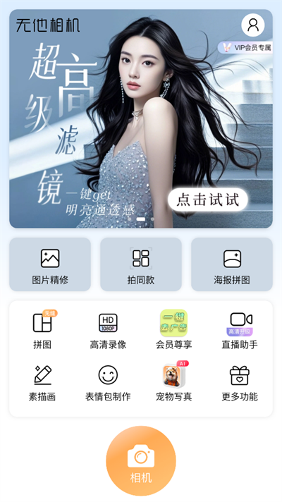 1、进入软件首页,直接点击相机;