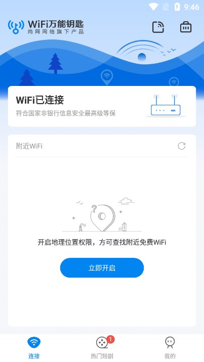 打开wifi万能钥匙后,开启定位,软件就会自动搜索附近的wifi;