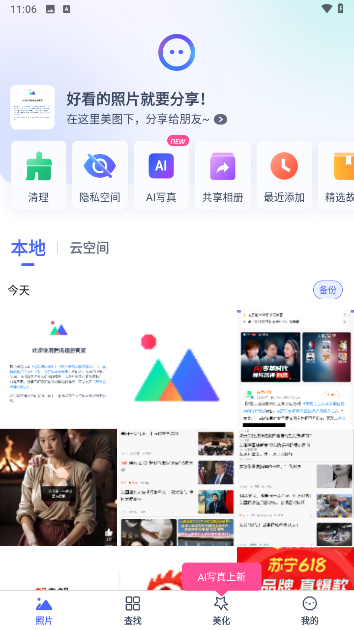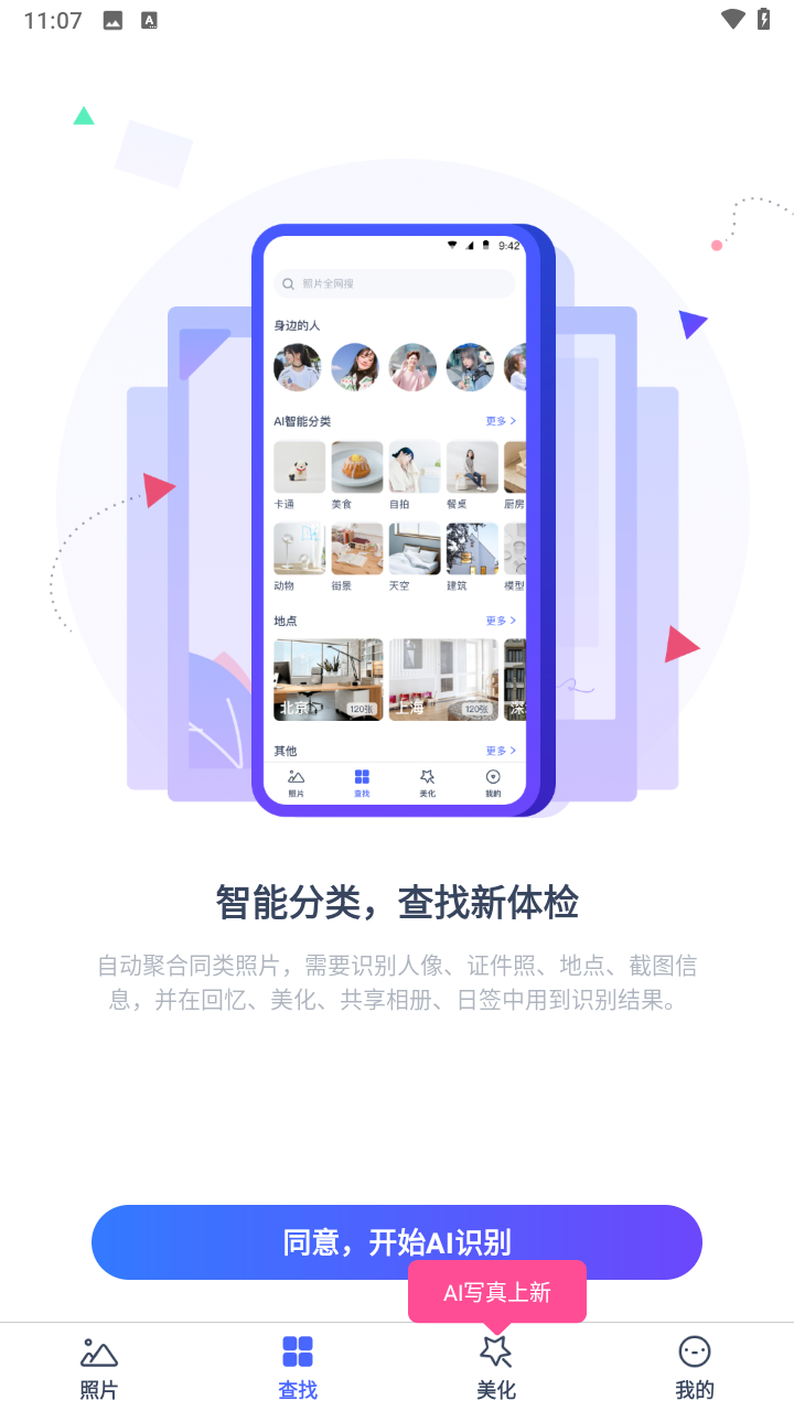 —智能识别旅游照、聚会照、自拍照、截图等,给你贴心的分类整理、浏览体验!