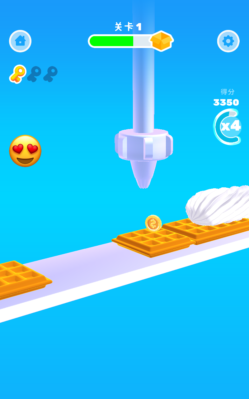 3、海量关卡,每个阶段的不同任务将给玩家带来极大的挑战和难度,期间你可以解锁不同的奶油颜色,更换设备或收集更多口味的果酱以及食物来完善后续的成品装饰。