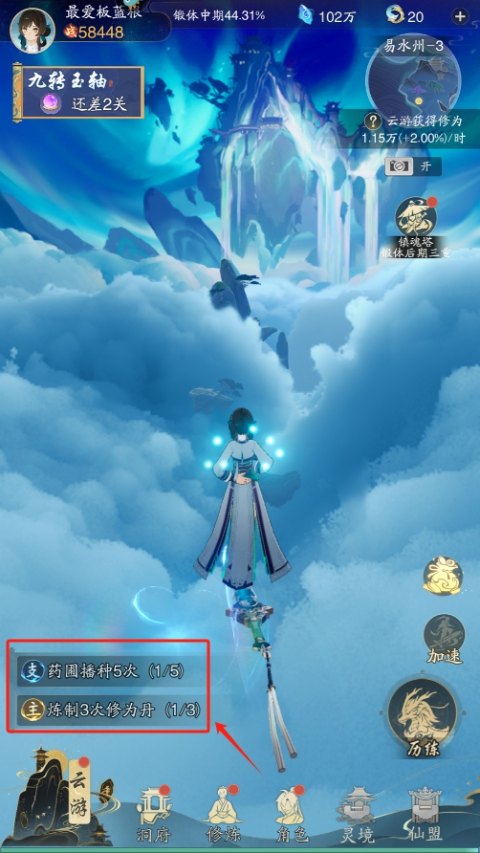 2、完成主线任务,获得道具、提升修为