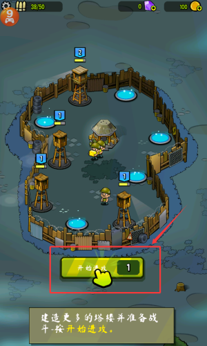 2、点击开始游戏按钮,建造更多塔楼并准备战斗。