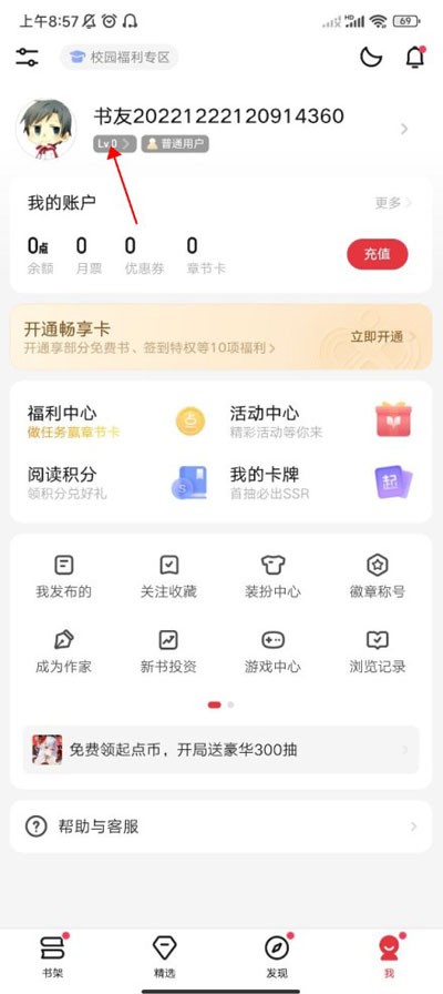 步骤一:打开手机中的app,进入我的账户页面,点击顶部显示的账号等级。