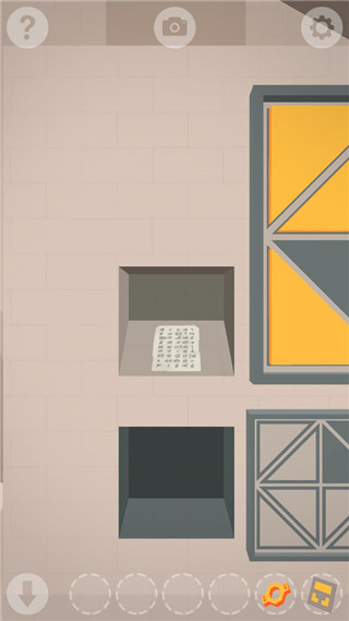 先拿到黄色木板。进入后查看左边门里。将黄色木板放上后过去。旋转石台拿到石牌。出来后上到旁边的墙上,拿到地上的提示纸。接着来到桥下,根据下面三角形的位置来点击调整。另一个也是一样,完成后拿到把手。再次如上图那样调整拿到提示纸。上桥放入把手过去。进入左边的房间里。左边查看提示符号并拿到提示纸。根据提示符号来调整,拿到右边的把手。出来后继续走右边的路放入把手,最后将石牌放入拱门上即可过关。