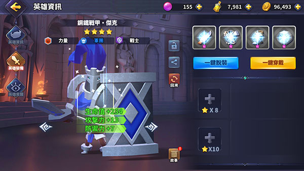 不同派系中数百名具有特定技能的独特英雄!召唤你的英雄,训练他们成为强大的战士!在 4*4 网格地图中即兴发挥您的攻防编队!