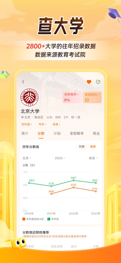 聚合2600余所高校信息。