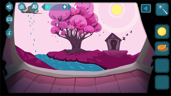 虽然是魂动早期的作品,但已经可以出现了魂动作品特有的画风,这些诡异但又奇妙的画面,就算放在现在不管是美术还是场景都依然算得上精品。不过也有瑕疵的地方就是没有新手引导,游戏在一开始就让玩家直接解谜,没有任何说明,对于玩家来说或许有些一头雾水,只能自己一路摸索。玩法上还是经典的点触式互动解谜,不过在解谜方法设计上非常有趣,游戏名为《谜梦画境》,所以场景即是一个梦也是一幅画,玩家通过机关找到蜡笔和橡皮之后,大量解谜就和绘画有关,比如把机关的一部分图案擦掉然后画上正确的图案,给白云涂上黑色让它下雨,甚至用蜡笔控制白天黑夜等等,这样奇思妙想的解谜体验就如同在童话里一般,梦幻而又奇妙。