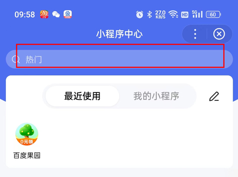 3、进入到小程序中心之后,在上方搜索框内搜索【百度果园】;