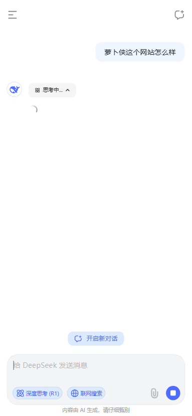 DeepSeek App是由杭州深度求索人工智能基础技术研究有限公司开发的一款中文ai,处理非常的高效和精准。软件的适用群体也是非常的广泛的,任何行业都是可以尝试这个ai。先进的算法模型,能够精准理解并迅速响应用户的查询需求。软件是目前中文ai中,最优秀的平台了,对中文的理解非常的精准。体验智能搜索的便捷与高效,开启不一样的数字化时代。