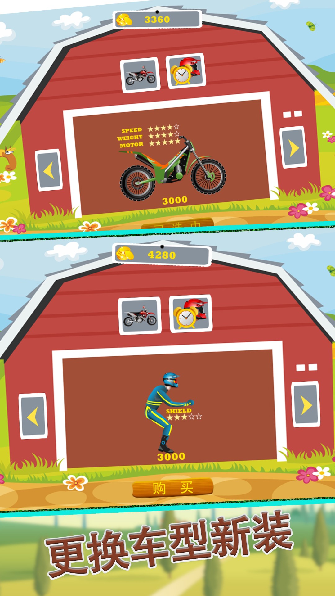 3、左边的按键可控制摩托车翻转,右边按键是跳跃和前进