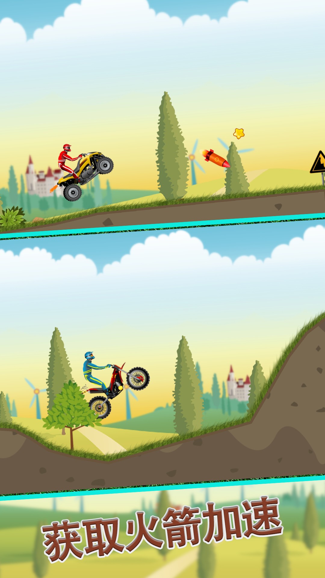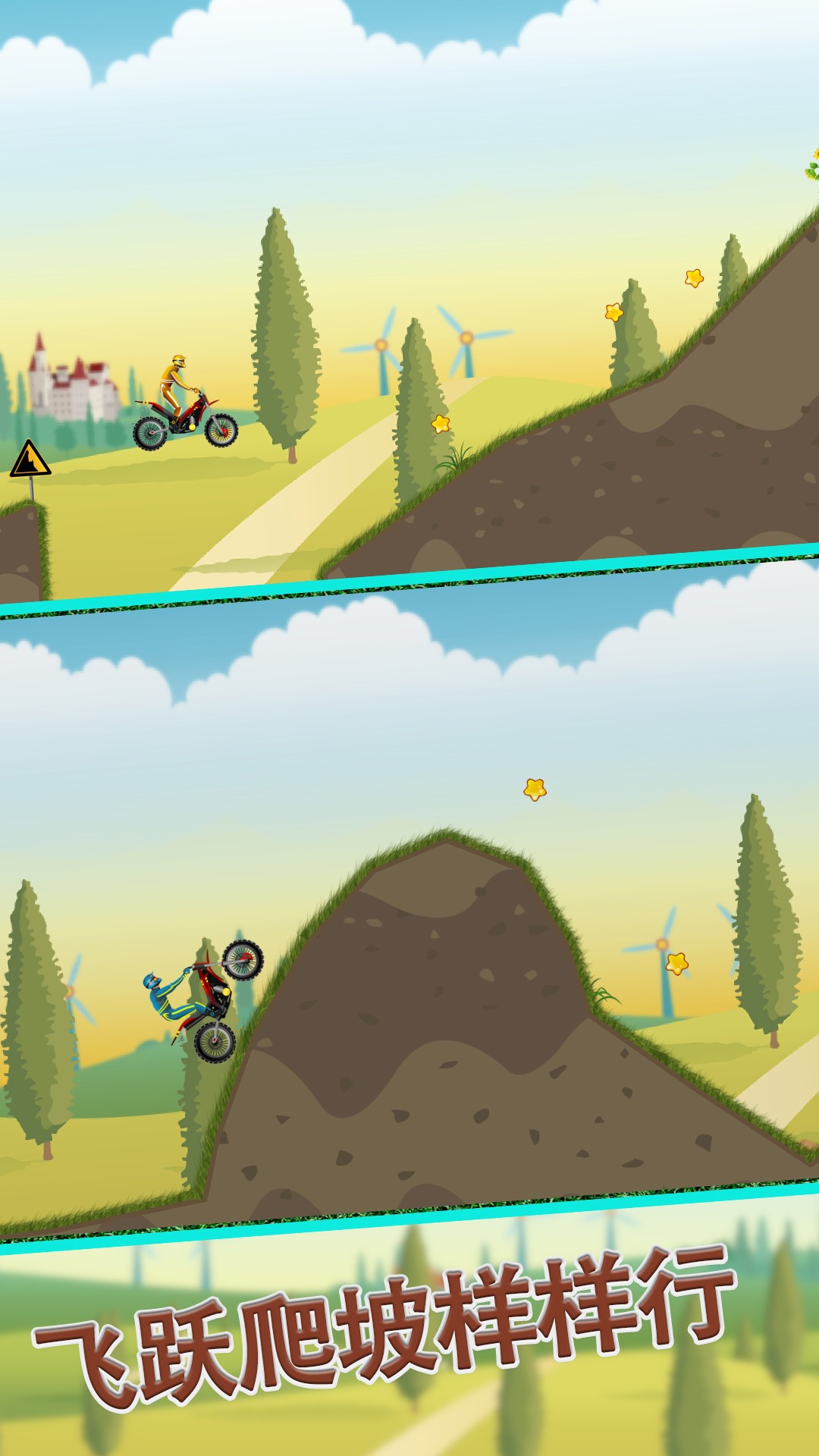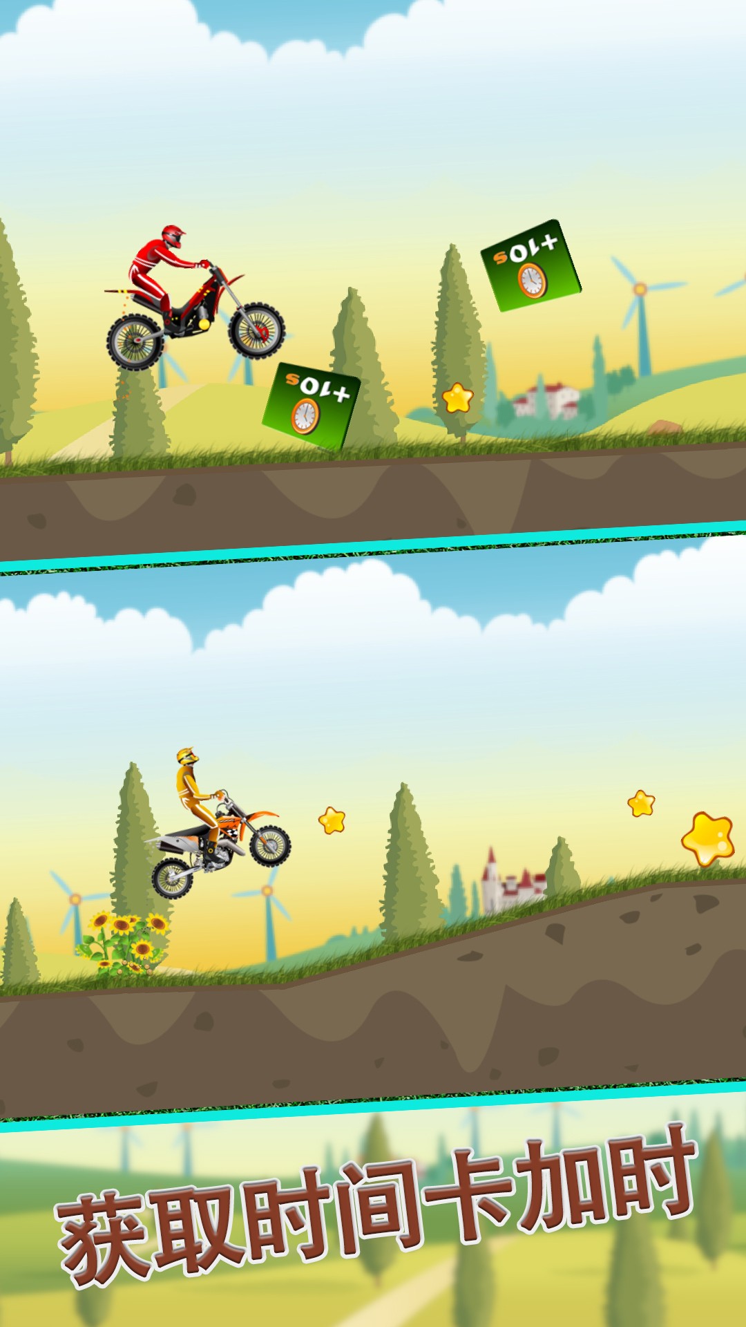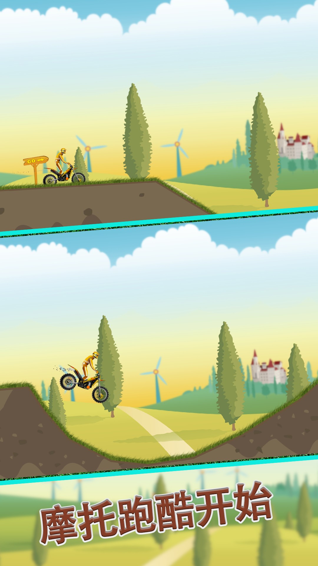 《摩托跑酷》是一款横屏摩托车竞速类的跑酷游戏。游戏中,玩家将扮演一位骑着摩托车的车手,不断跨越旅途中的障碍,加快速度,适当地踩油门或者刹车,又快又平稳地通过关卡。值得一提的是,游戏的物理引擎十分真实,如果速度过快遇到小石子之类的障碍物,真的会摔倒在地上。