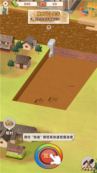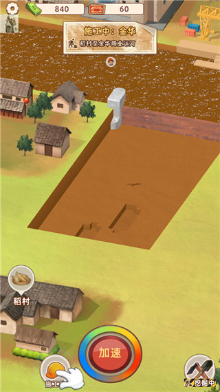 7、之后施工队会开始挖运河,我们点击加速键可以加速挖掘进度;