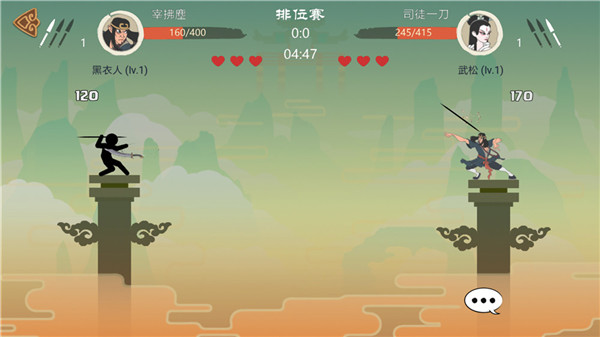 在游戏中,玩家在对战中每次和对手都有可能出现在不同的高度,只需要掌握一定的投掷抛物线射击的技巧,尽量瞄准头部,扔出自己的武器,就可以获得最大化伤害。通过瞄准射击,从而赢得比赛的胜利