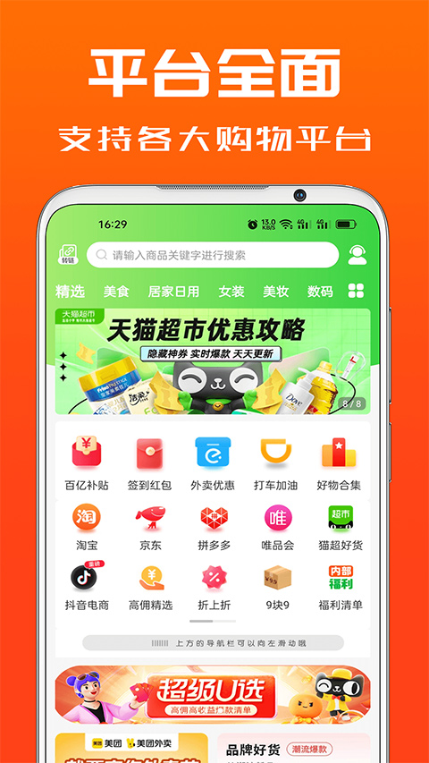 4、平台全面,支持各大电商平台优惠券和返利、外卖红包和返利