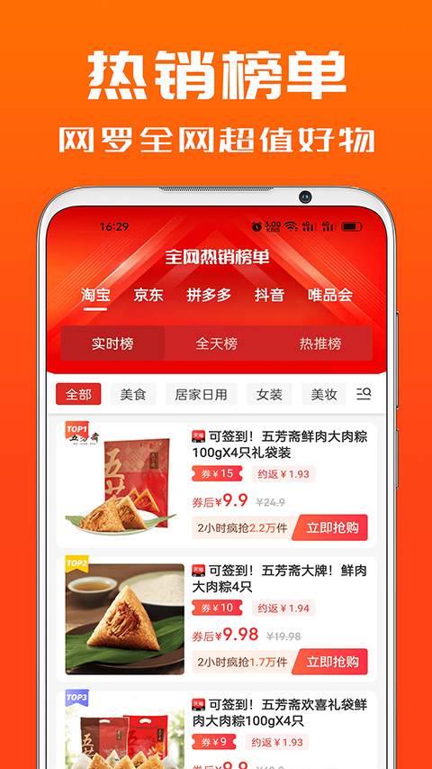 3、漏洞神单,每日实时更新全网低价漏洞单,前N件半价、整点秒杀、凑单满减