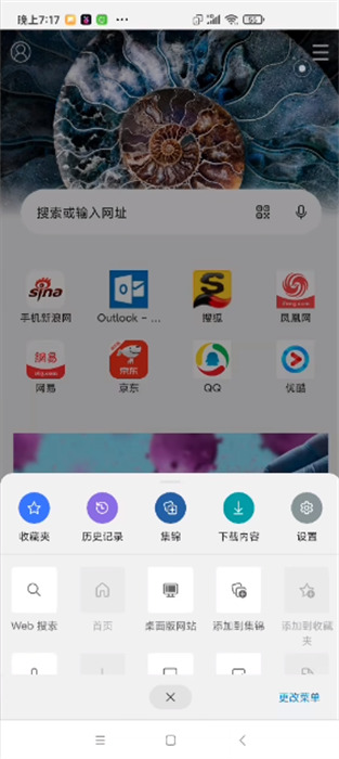 下载并打开手机edge浏览器,在下方点击底部“菜单”按钮,就是最中间那个
