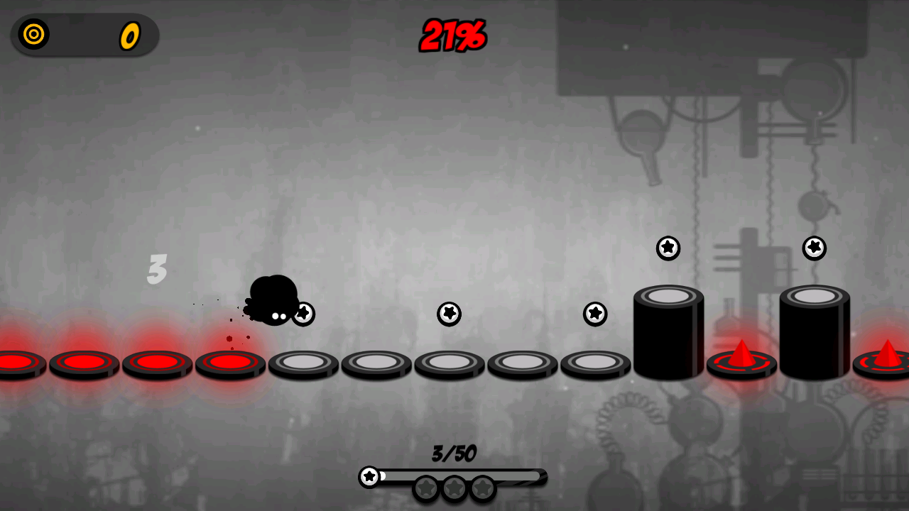 2、跟随音乐的节奏点击屏幕,跳过尖刺、高台和更多新障碍!