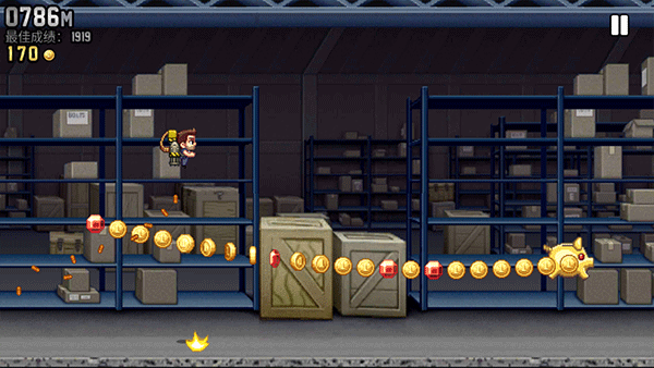 3、优点:这样做既可以收集最多的金币,又可以有效避开电火链。因为电火链会出现在屏幕的任何位置,如果Barry飞在顶空或者在陆地奔跑,他可以改变的位置就很小,这样遇到前方电火链来不及起飞或下落。