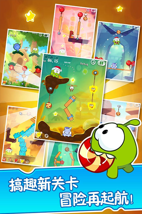 1、 切割掉嘴上面的绳子,这样糖果会掉落去收集星星(不会被Toss抓到)。