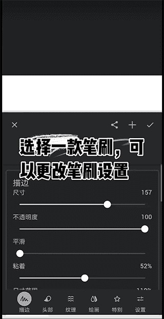 7、在描边进行时,用户可以选择一款笔刷去更改笔刷的设置,非常方便。