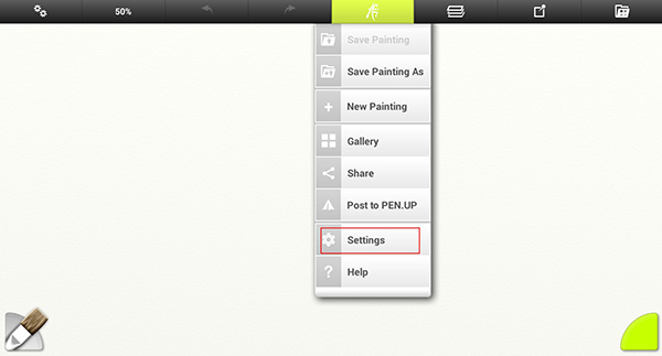 1、先下载安装ArtRage,然后打开软件,点击界面又上角的画笔按钮,并找到设置。