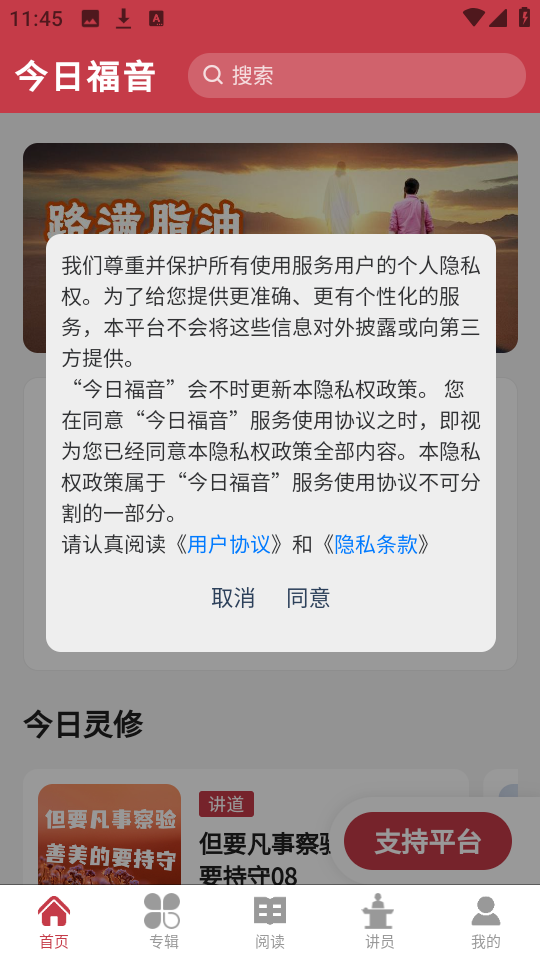 2、进入首页之后,包含了讲道,查经,诗歌,读圣经等多个版块内容。