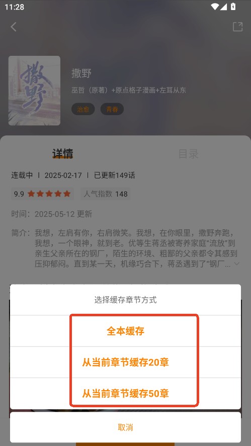 3.选择章数缓存即可。