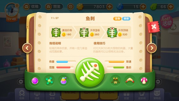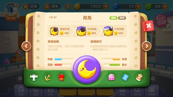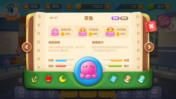 章鱼炮塔对于清除道具和杀怪物有着绝佳的效果,随着升级,子弹的数量也会增加。