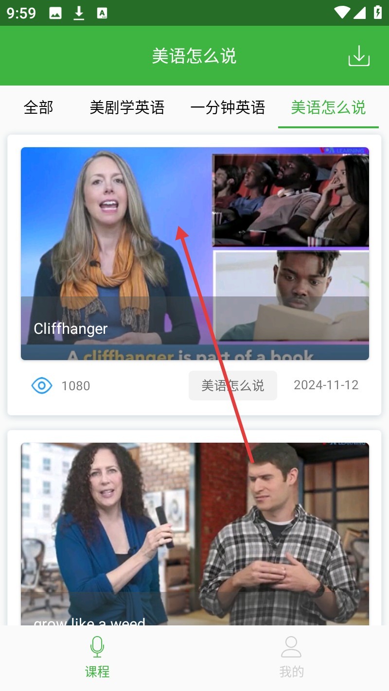 1、在课程页面点击【美语怎么说】,进入美语怎么说课程页面。